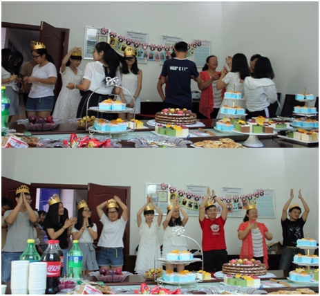 当“祝你生日快乐……”这熟悉而美妙的旋律响起的时候,全场灯光熄灭,大家一起齐唱生日歌,寿星们许下了自己的生日愿望。