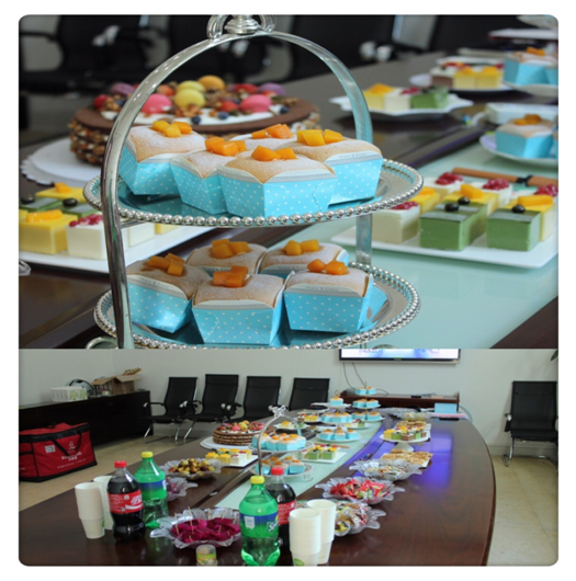 这是一次别开生面的生日聚会,精致的甜品、各种美味的零食、水果。